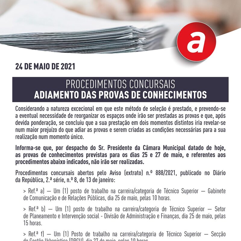 Aviso: Adiamento de Provas de Conhecimentos em ... -