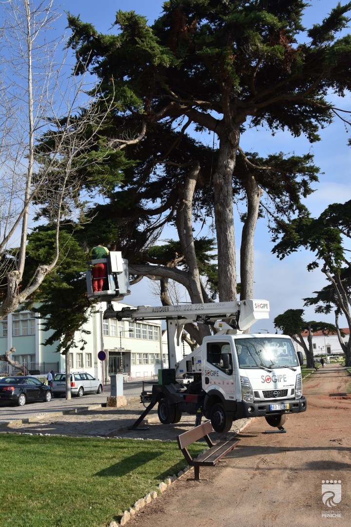 Decorrem no Jardim do Baluarte - Peniche, trabalhos de estabilização dos seis ciprestes de grande porte ali existentes.