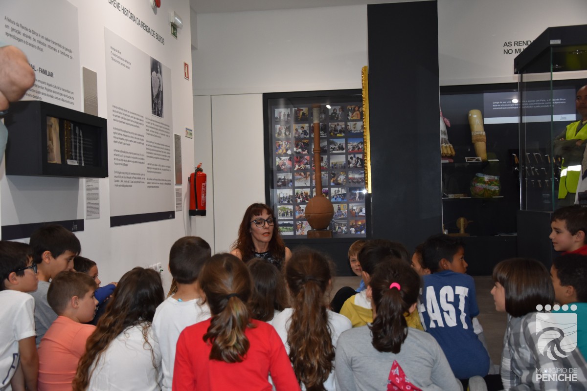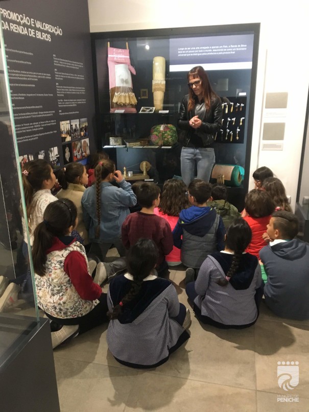 Este ano, as crianças do 2º, 3º e 4º anos de escolaridade foram convidadas a conhecer o Museu da Renda de Bilros de Peniche onde, para além da visita guiada, assistiram ao teatro de fantoches “Maria, a avó e a renda de bilros” e puderam experimentar fazer o ponto com bilros gigantes.
