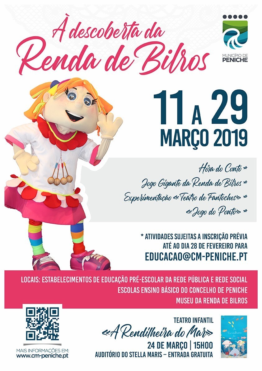 Considerando a importância das ações de educação patrimonial que têm vindo a ser desenvolvidas junto da comunidade educativa em torno da Renda de Bilros de Peniche, a Câmara Municipal de Peniche irá realizar, de 11 a 29 de março, o programa "À descoberta da Renda de Bilros".
