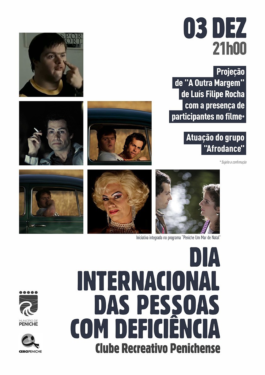 O Dia Internacional das Pessoas com Deficiência é assinalado no dia 3, com a projeção do filme “A Outra Margem” de Luis Filipe Rocha e atuação do grupo “Afrodance”, ambas no Clube Recreativo Penichense, a partir das 21:00 horas.