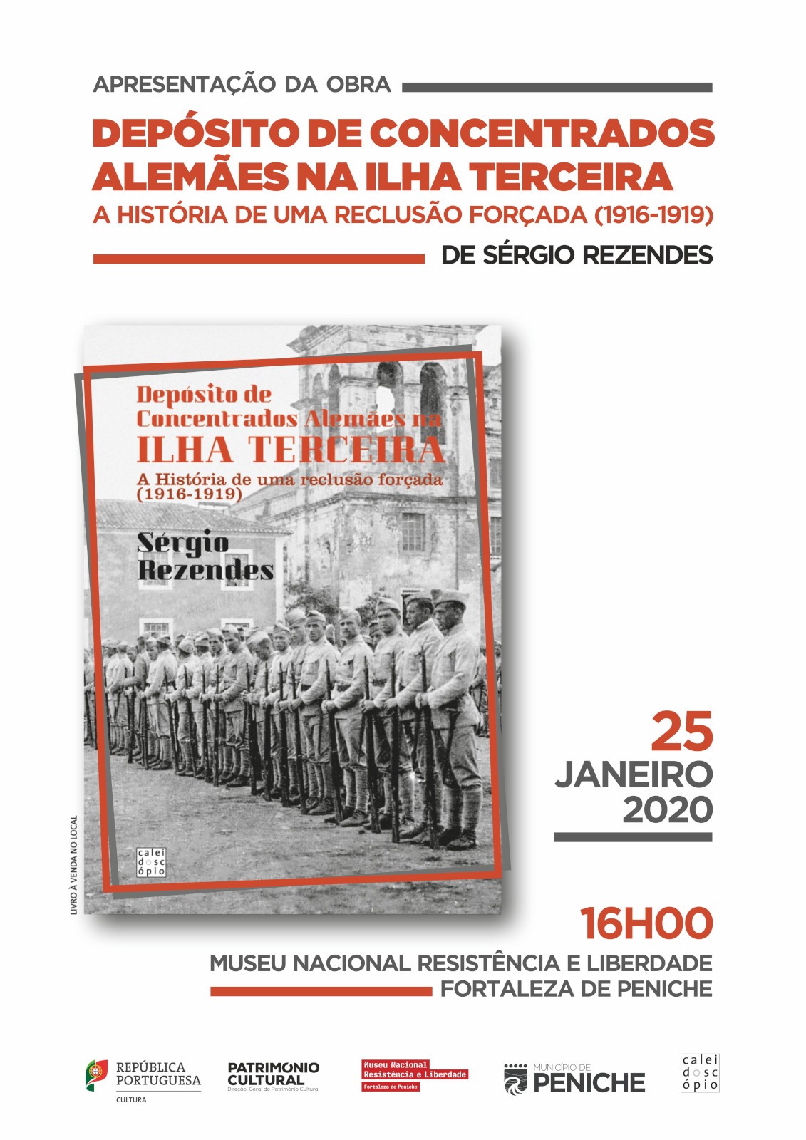 Tendo-se assinalado, no passado mês de novembro de 2019, o centenário da libertação do contingente de prisoneiros alemães e austro-húngaros aprisionados na Fortaleza de Peniche durante a Primeira Guerra Mundial, o Museu Nacional Resistência e Liberdade será palco da apresentação da obra “Depósito de Concentrados Alemães na Ilha Terceira - A História de uma reclusão forçada”, da autoria do Prof. Doutor Sérgio Rezendes.