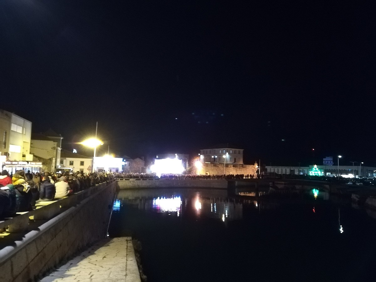 Um mar de gente ocupou a ribeirinha avenida, o Largo do Município, a Travessa dos Mareantes, a Rua 13 de Infantaria e a ponte que galga o Espelho de Água e dá início à Avenida do Porto de Pesca para dizer adeus a 2018 e, em conjunto, celebrar a chegada de 2019.