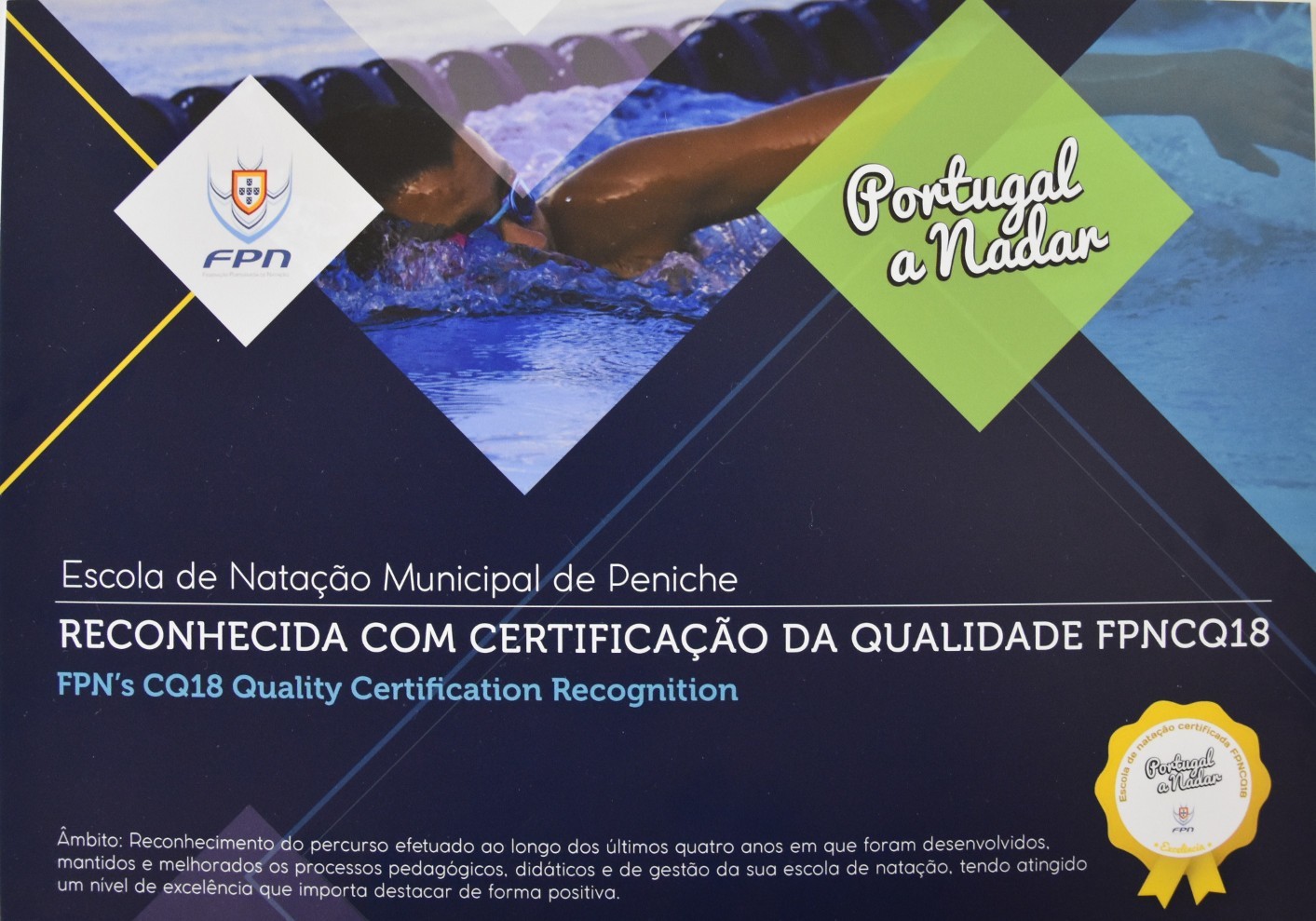 Importa referir que a Piscina Municipal de Peniche, entrou no processo de Certificação de Qualidade há quatro anos, tendo como principal objetivo potenciar a melhoria contínua da qualidade pedagógica, didática e de gestão da Escola de Natação, de forma a manter e aumentar satisfação dos alunos que a frequentam.