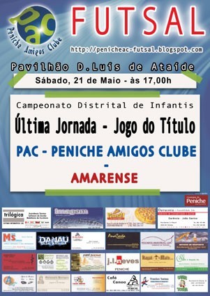 Depois da injusta e infeliz perda da Taça em penaltis, este Sábado, 21 de Maio pelas 17h00, no pavilhão D. Luís de Ataíde em Peniche, teremos novamente um jogo entre PENICHE AMIGOS CLUBE (PAC) – AMARENSE.