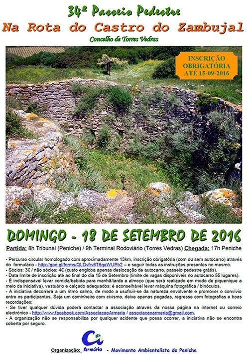 - Partida - 8:00 Tribunal de Peniche em Autocarro (e pelas 9:00 do Terminal Rodoviário de Torres Vedras, junto à entrada principal)