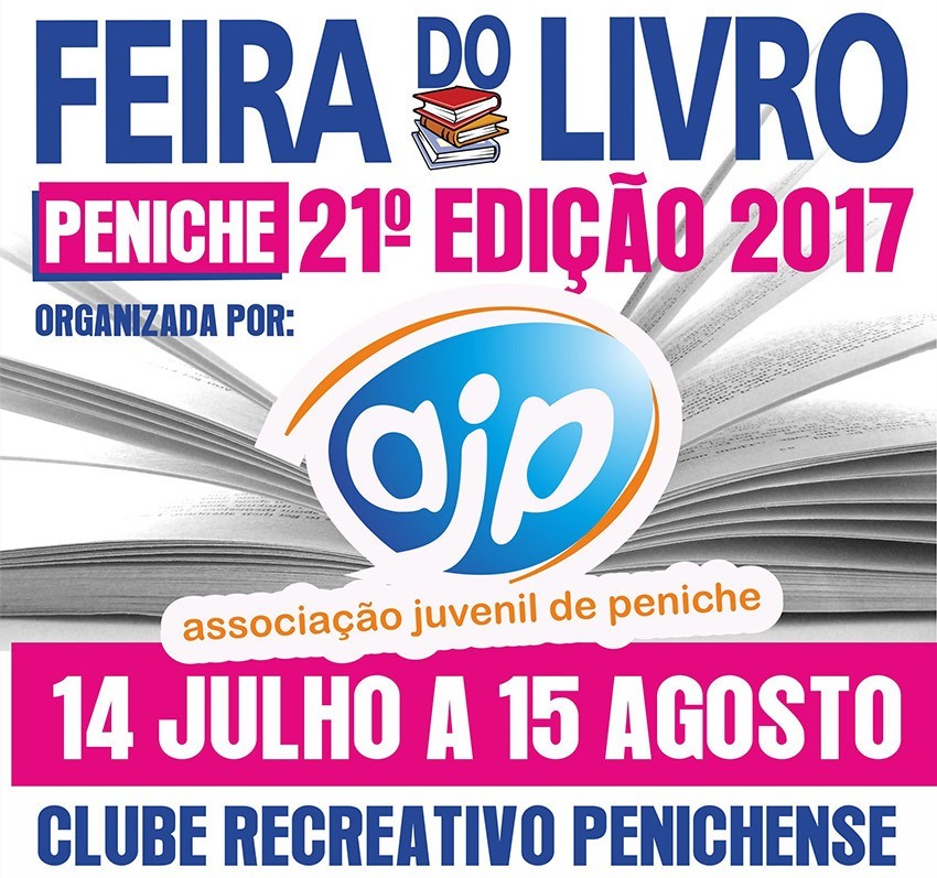 Numa organização da Associação Juvenil de Peniche, teve início a 21ª edição da Feira do Livro de Peniche no passado dia 14 de julho e decorrendo até ao dia 15 de agosto. A feira decorrerá no espaço habitual, no Clube Recreativo Penichense e estará aberto diariamente entre as 16h e as 23h30.
