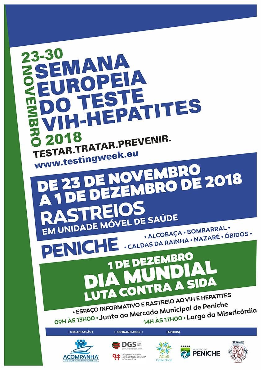 Conforme tem sido habitual, a Acompanha, em parceria com o Agrupamento dos Centros de Saúde do Oeste Norte, irá disponibilizar, em Unidade Móvel de Saúde, a possibilidade das comunidades dos concelhos de Peniche, Óbidos, Bombarral, Caldas da Rainha, Alcobaça e Nazaré, realizarem o rastreio, de forma anónima, gratuita e confidencial, com resultados no momento.