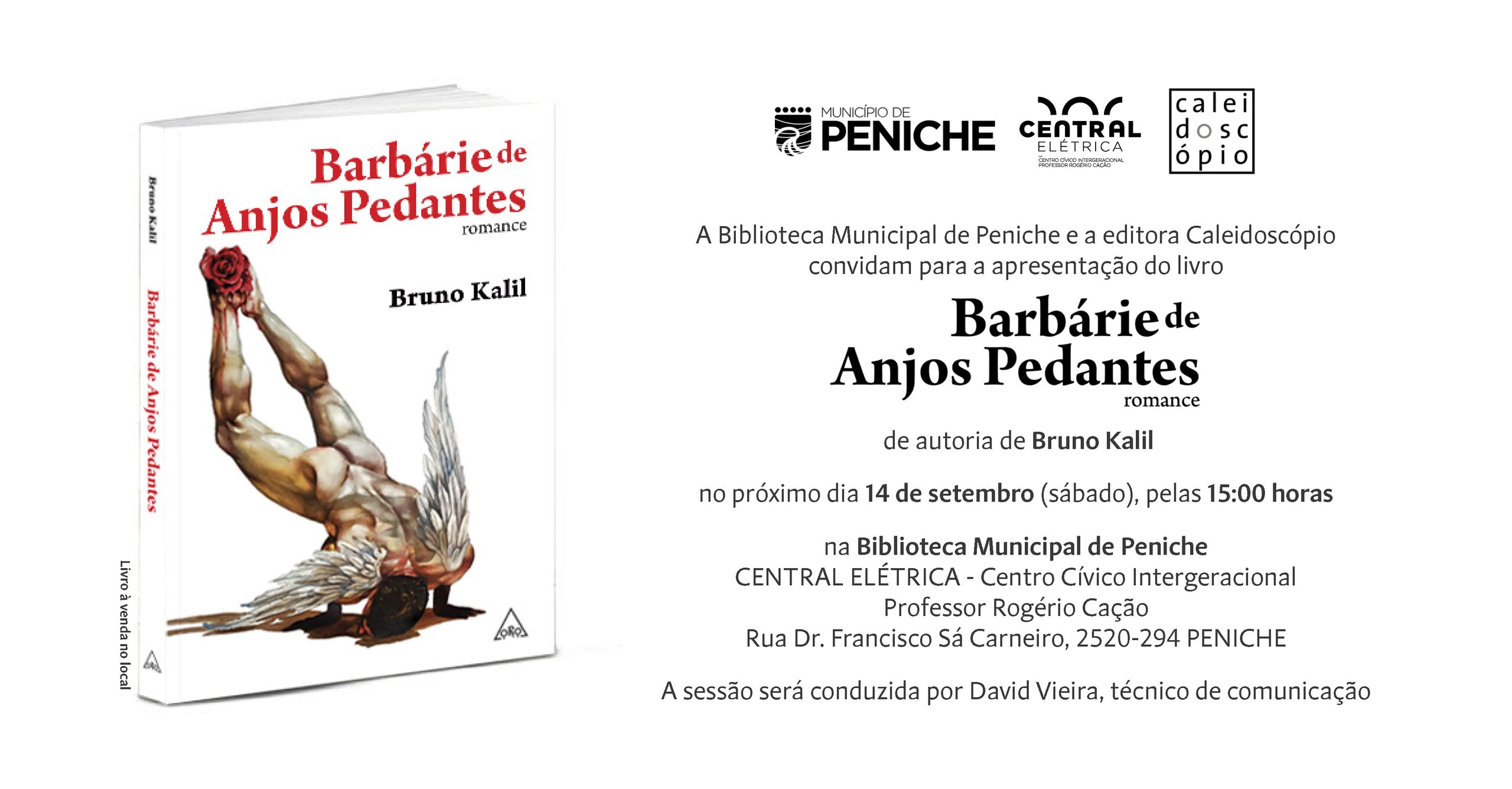 No próximo sábado, 14 de setembro, pelas 15h00, na Biblioteca Municipal de Peniche /CENTRAL, Bruno Kalil apresentará o seu mais recente livro, "Barbárie de anjos pedantes".
