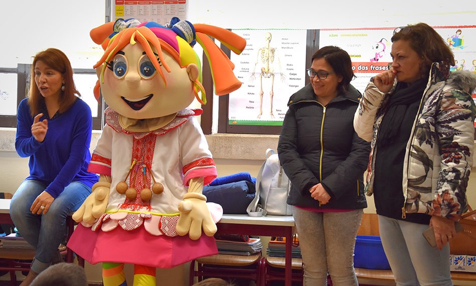 A “Maria Rendinhas” foi presença constante na apresentação dos jogos didáticos, experiências na execução de Renda de Bilros ou participação na leitura de um conto infantil, que foram as diversas possibilidades colocadas ao dispor deste público que, igualmente, interagiu com as Rendilheiras presentes.