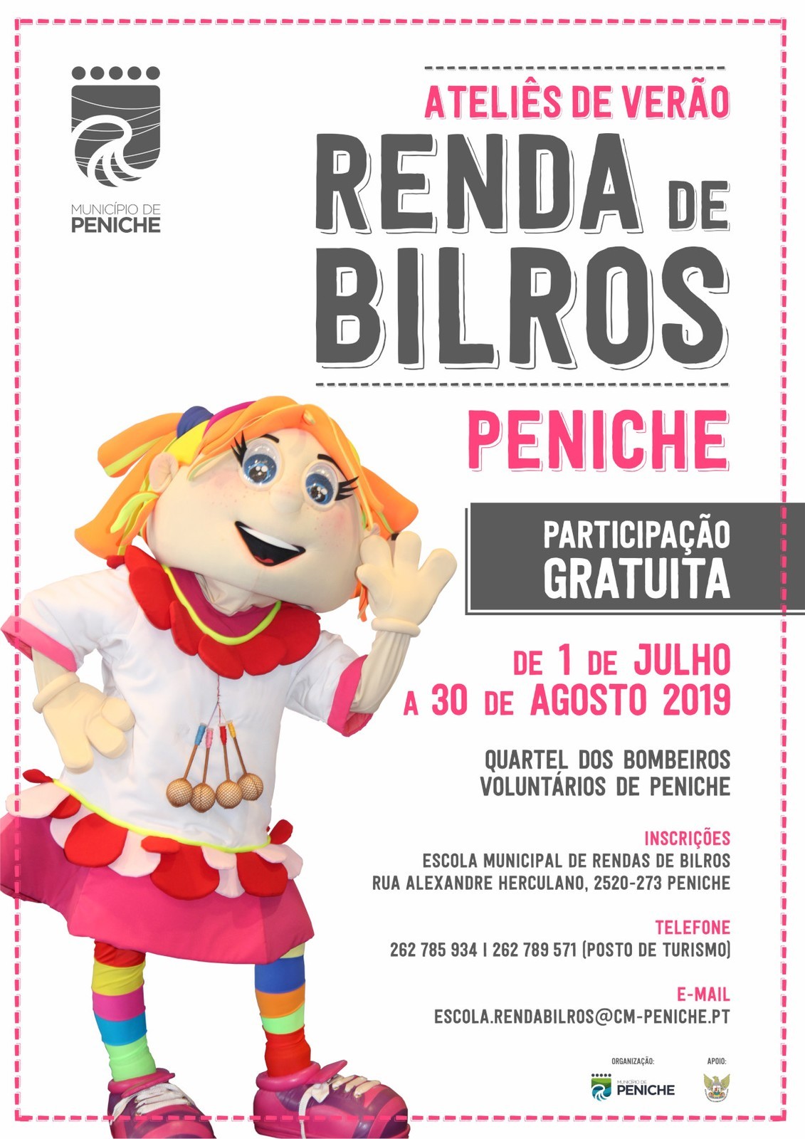 Tendo como “pano de fundo” a Renda de Bilros de Peniche, vão ser desenvolvidas diversas atividades - podem ser jogos, visitas, etc. – nas quais os encarregados de educação são convidados a inscrever os seus educandos, com a particularidade de esta ser uma atividade gratuita.
