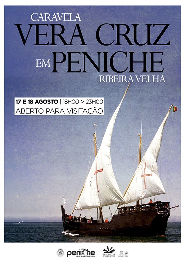 Nos próximos dias 17 e 18 de agosto poderá visitar a Caravela Vera Cruz, entre as 18h00 e as 23h00, na Ribeira Velha em Peniche.