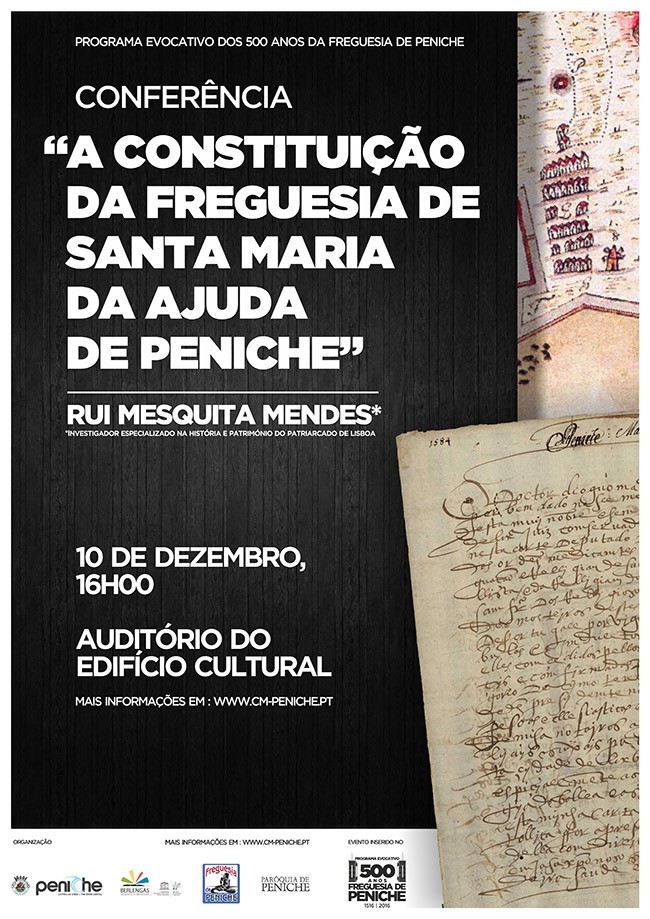 No próximo dia 10 de dezembro, pelas 16h00, terá lugar no Edifício Cultural da Câmara Municipal de Peniche a conferência "A constituição da freguesia de Santa Maria da Ajuda de Peniche", pelo investigador Rui Mesquita Mendes.