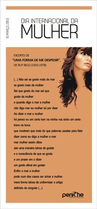 (…) Não sei se gosto mais do mar se gosto mais da mulher Sei que gosto do mar sei que gosto da mulher e quando digo o mar a mulher não digo mar ou mulher só por dizer Ao dizer o mar a mulher há penso eu um certo tom na minha voz sinto um certo travo na boca que mostram que mais do que palavras usadas para falar dizer como eu digo a mulher o mar mar mulher assim ditos são uma maneira talvez de gostar e a consciência de que se gosta e um prazer em o dizer um gosto afinal em gostar Enfim o mar a mulher pode num dos casos ser a/mar a mulher mera forma talvez de uniformizar o artigo definido do singular (…)