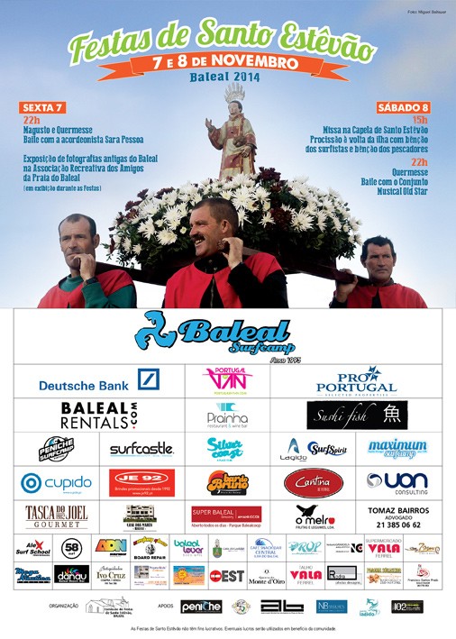 15h: Missa na capela de Santo Estêvão seguida de Procissão à volta da ilha, Benção dos Surfistas e Benção dos Pescadores.