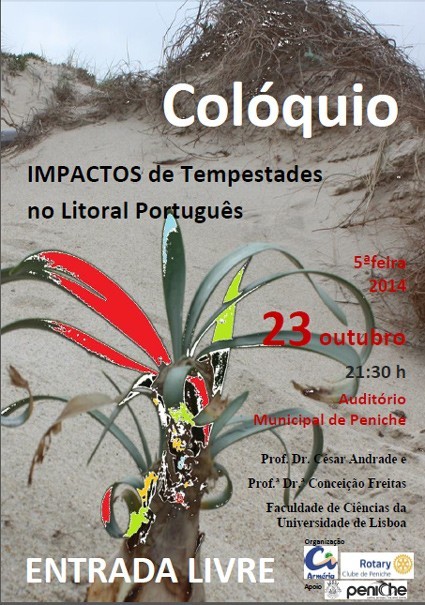 No próximo dia 23 de outubro, pelas 21h30, terá lugar no Auditório do Edifício Cultural da Câmara Municipal de Peniche, um colóquio subordinado ao tema "Impactos de tempestades no litoral português".