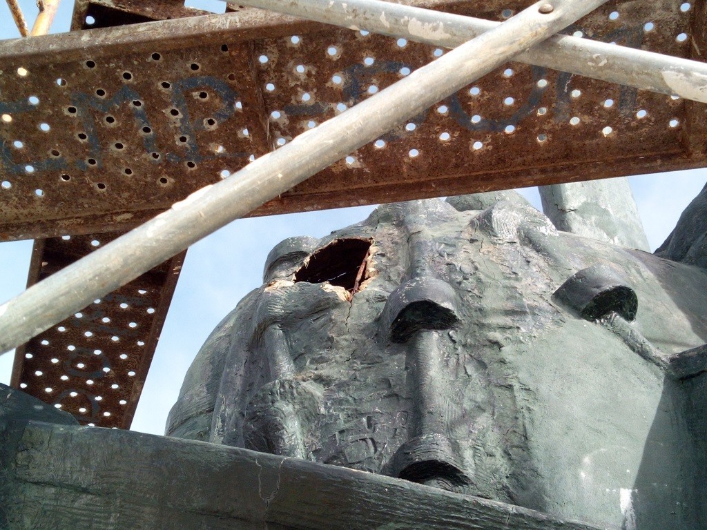 Está a decorrer desde o passado dia 14 de fevereiro uma intervenção de restauro nesta escultura de grandes dimensões.