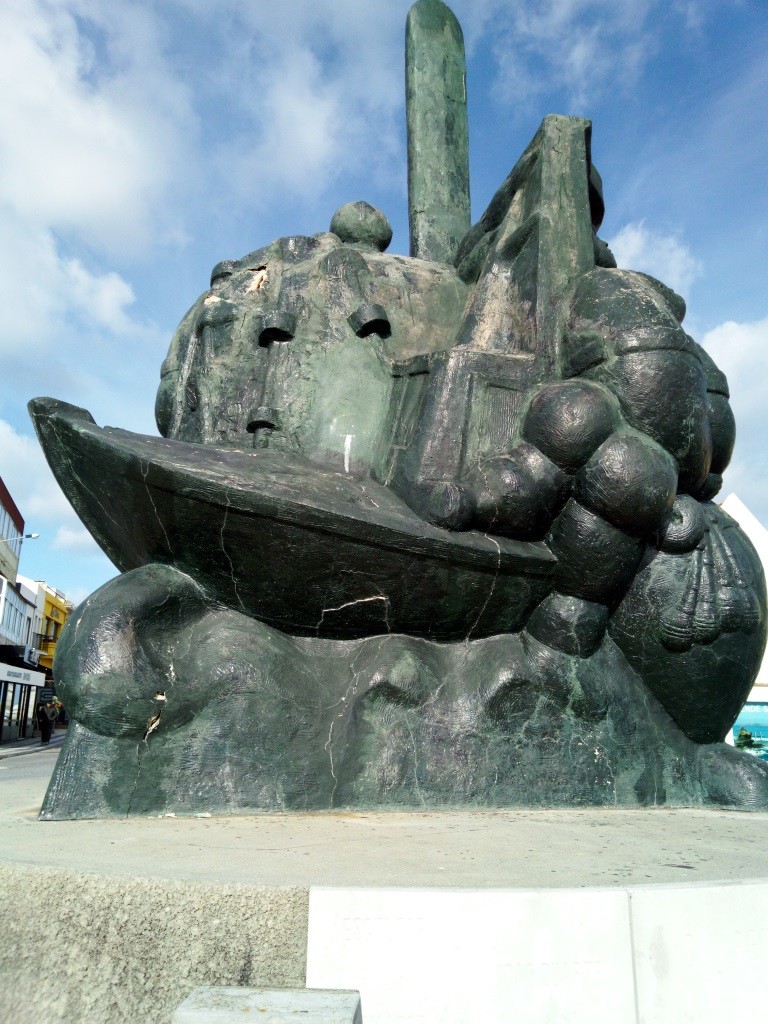 Da autoria do Escultor João Duarte e datada de 1992, estruturalmente é constituída por uma armadura metálica (ferro), armada em forma de rede revestida por argamassa e pintada posteriormente com tinta de esmalte de cor verde / bronze com “pátine” esverdeada natural.