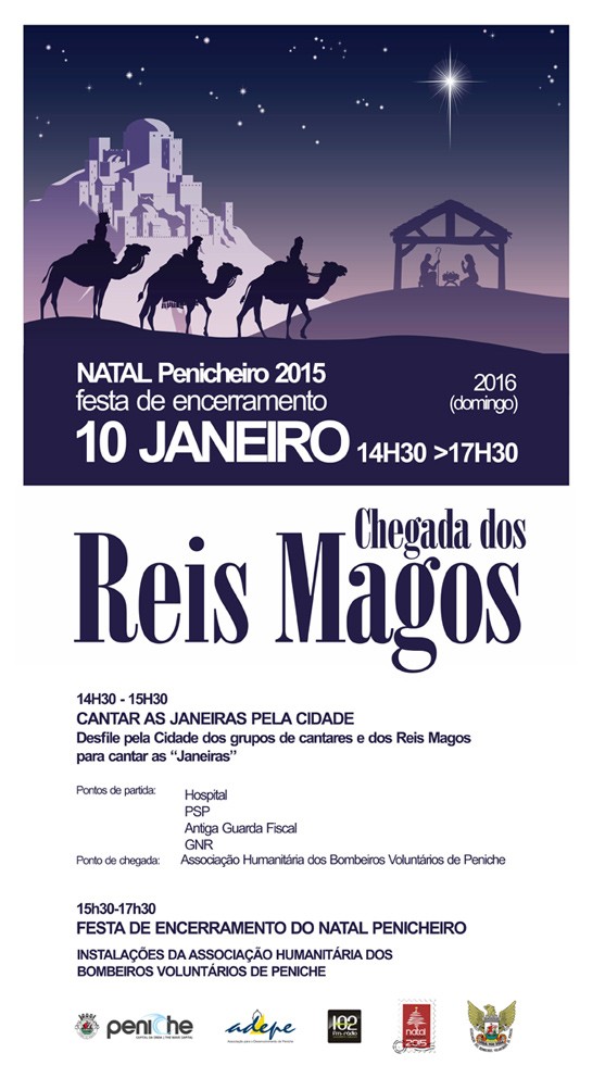 As janeiras serão cantadas pelos grupos musicais Cantar d´Amigos, Pé d´Areia e Mar à Vista e também pelos ranchos folclóricos de Geraldes, D. Pedro I de Serra D´El Rei, “As Lavadeiras” de Bolhos e “Os Camponeses da Beira-Mar” de Ferrel. O desfile dos grupos de cantares terá início às 14h30, a partir de pontos de partida diferentes, nomeadamente o Hospital São Pedro Gonçalves Telmo de Peniche, a esquadra da Policia de Segurança Pública e o posto de Peniche da Guarda Nacional Republicana. Os grupos irão “levar” as janeiras percorrendo circuitos diferentes na cidade, que irão confluir para as instalações da Associação Humanitária dos Bombeiros Voluntários de Peniche, com a chegada prevista por volta das 15h30, onde irá ter lugar a festa de encerramento da edição deste ano do Natal Penicheiro. A animação da festa contará com mais cantigas de janeiras, com a chegada dos Reis Magos, com uma mostra de produtos tradicionais por parte de coletividades do concelho e com o tradicional Sorteio de Natal patrocinado pelo comércio local.