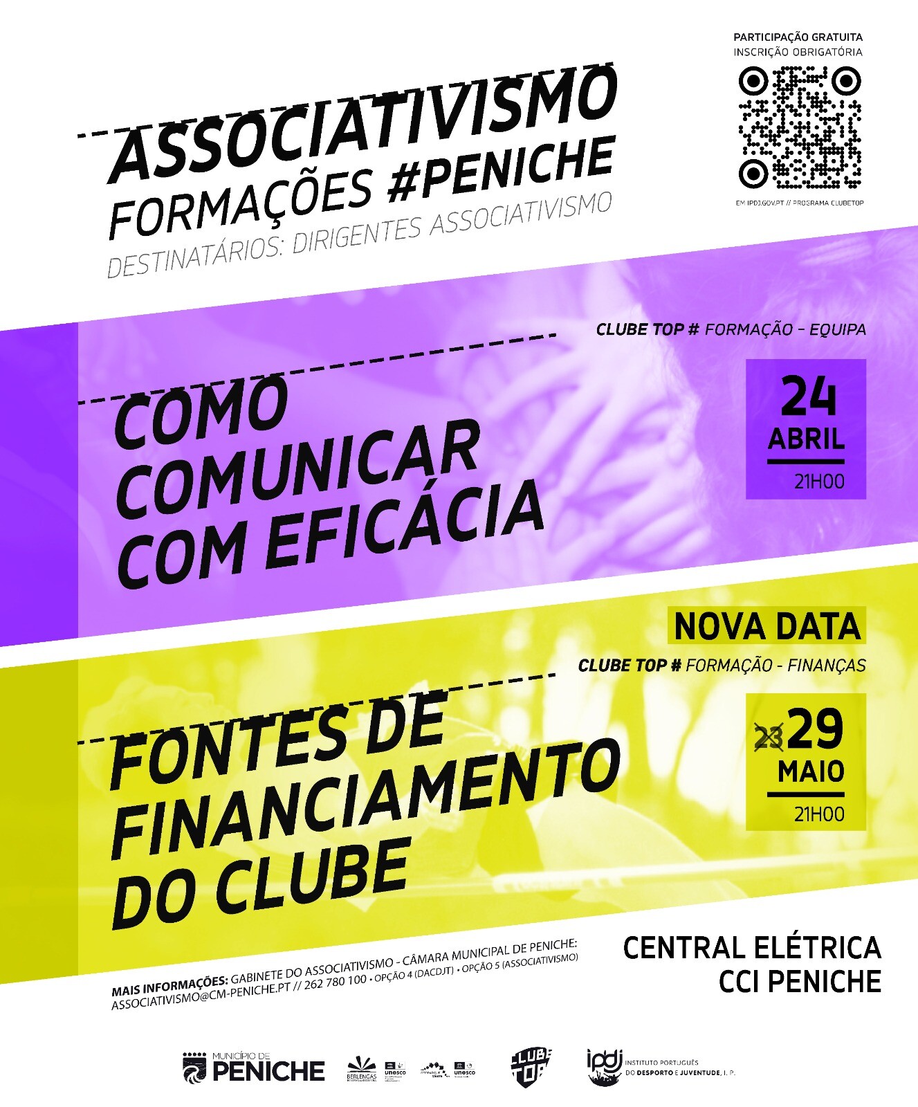 O programa inclui sessões como "Como Comunicar com Eficácia", no dia 24 de abril, e "Fontes de Financiamento do Clube", no dia 29 de maio, ambas às 21h00 no Auditório Central do Conhecimento, localizado na Central Elétrica – Centro Cívico Intergeracional Prof. Rogério Cação. Estas formações são realizadas em parceria com o Instituto Português do Desporto e Juventude (IPDJ).