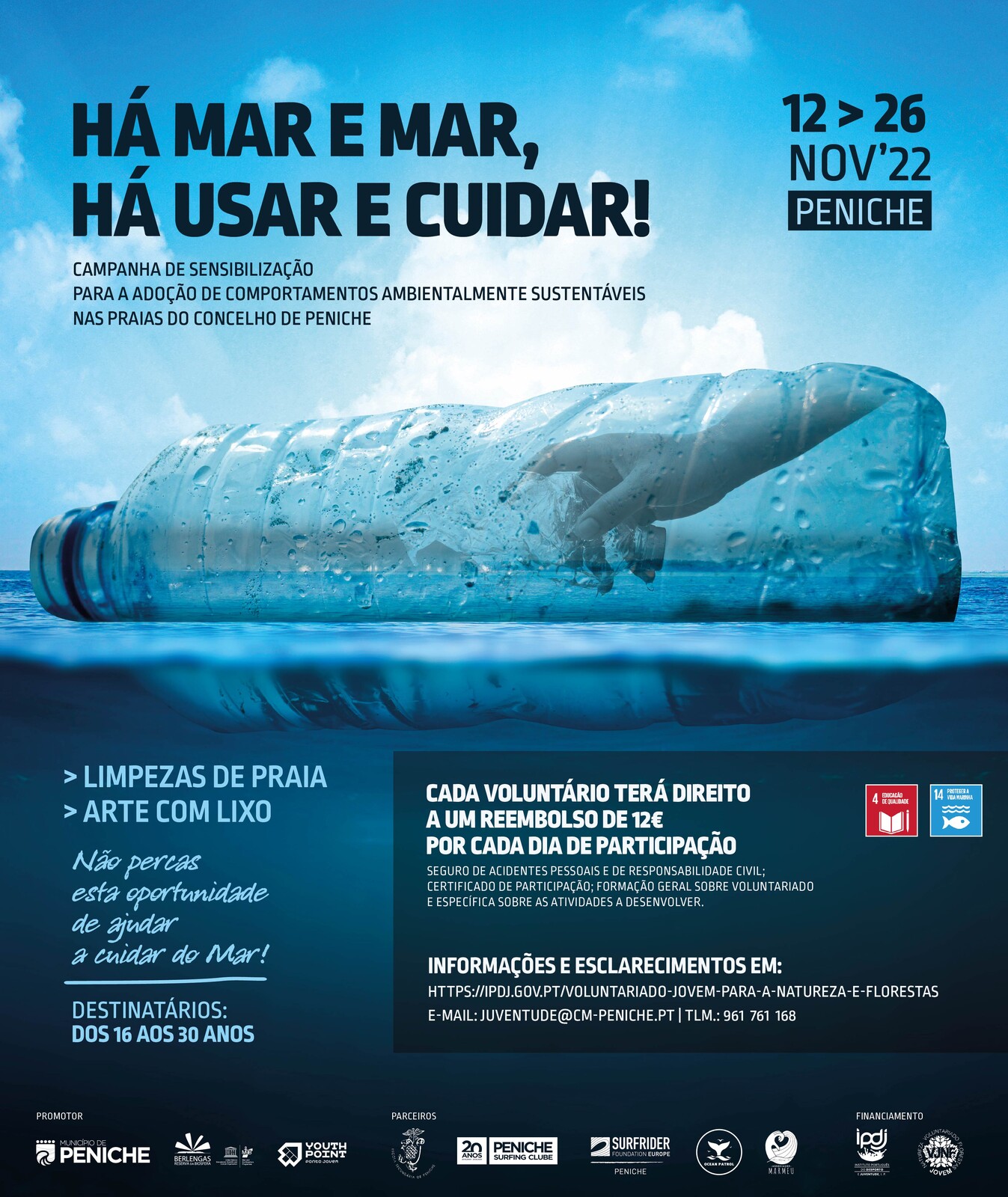 No âmbito da aprovação da candidatura ao programa de voluntariado dinamizado pelo Instituto Português do Desporto e Juventude o Município de Peniche lança uma campanha para sensibilizar a comunidade jovem local para a importância de comportamentos ambientalmente responsáveis nas praias e para o impacto do lixo na preservação e conservação dos ecossistemas marinhos.
