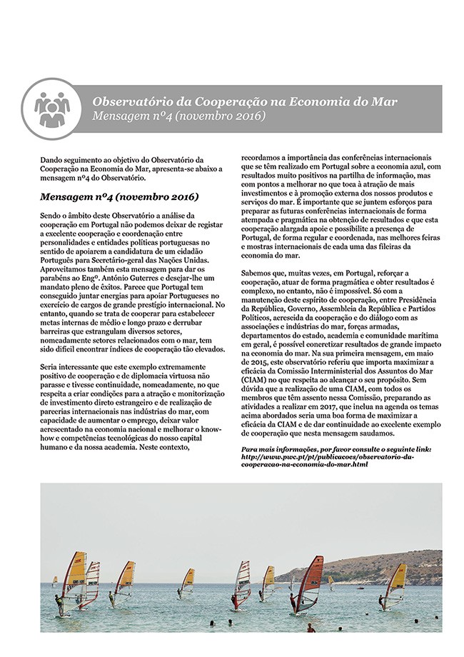 - Observatório da Cooperação na Economia do Mar - Mensagem Nº 4 (novembro 2016)