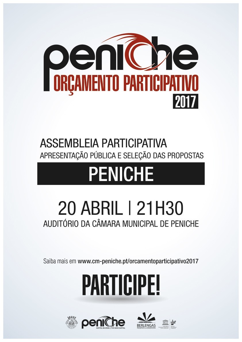 Para mais informações consulte o link: www.cm-peniche.pt/orcamentoparticipativo2017 ou dirija-se à Secretaria dos Serviços de Ação Social da Câmara Municipal de Peniche.