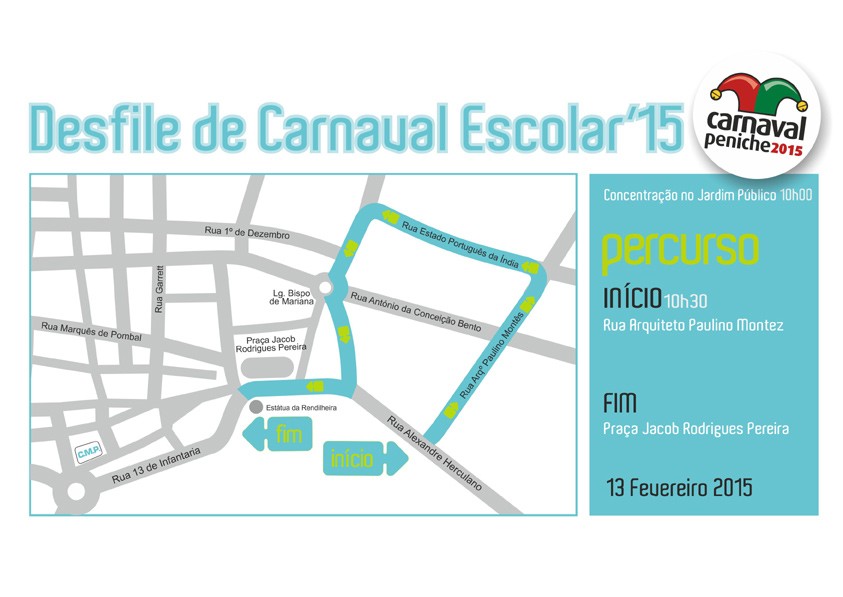 O Grande Corso Carnavalesco decorrerá nos dias 15 e 17 de fevereiro, com início às 15h00, junto à Fortaleza e terá o seguinte percurso: