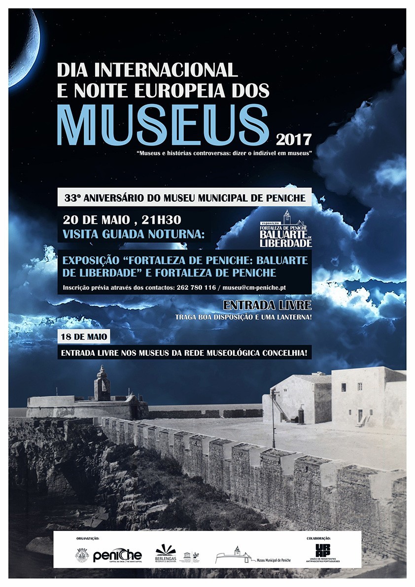 Assinala-se a 18 de maio de 2017, o Dia Internacional dos Museus e o 33º aniversário do Museu Municipal de Peniche e, a 20 de maio, a Noite Europeia dos Museus. O Município de Peniche associa-se a estas celebrações com a promoção de uma visita guiada noturna à recém-inaugurada exposição “Fortaleza de Peniche: Baluarte de Liberdade” e lugares icónicos associados à história do monumento, como o Bloco B da antiga prisão política, Baluarte Redondo/Segredo e Casamatas da Fortaleza de Peniche.