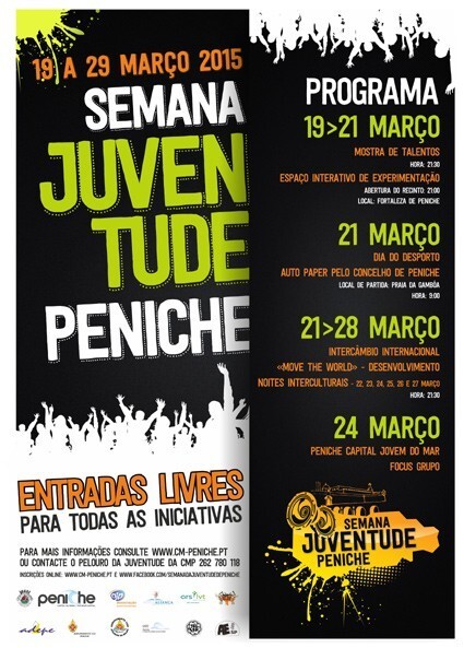A Semana da Juventude de Peniche pretende promover Jovens que desenvolvam atividades em diversas áreas, desde a música, dança, teatro, desporto, empreendedorismo, entre outras Para o efeito, será realizada uma Mostra de Talentos, entre os dias 19 e 21 de março, na Fortaleza de Peniche, que contará com a participação ativa de jovens do concelho, demonstrando os seus projetos.