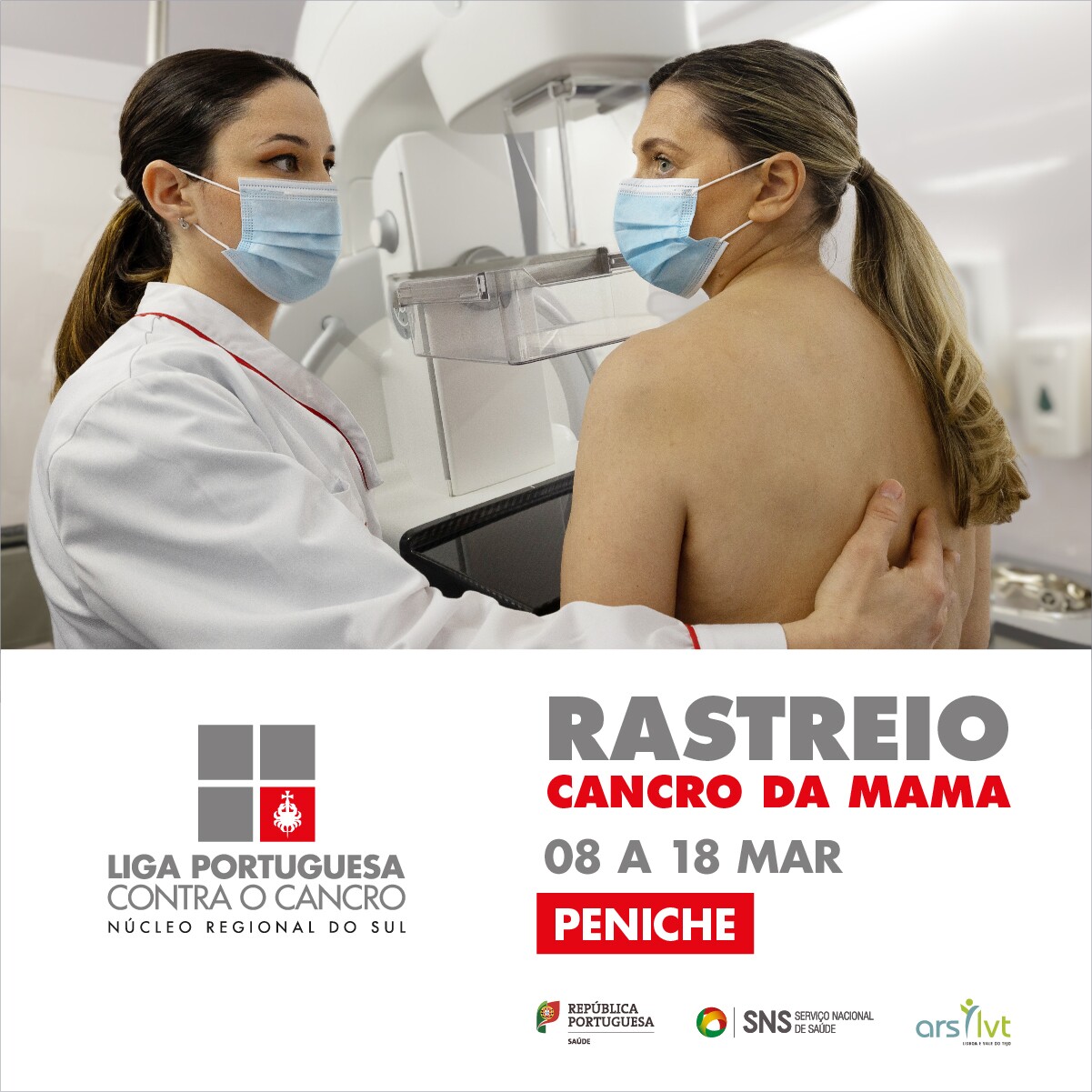 O Núcleo Regional do Sul da Liga Portuguesa Contra o Cancro (LPCC), em parceria com a Administração Regional de Saúde de Lisboa e Vale do Tejo (ARSLVT) e o ACES Oeste Norte, anuncia a continuidade do Rastreio do Cancro de Mama no Município de Peniche.