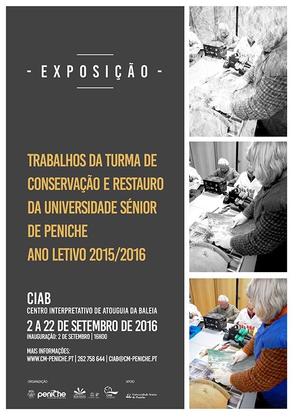 Inaugura hoje, sexta-feira, a Exposição dos trabalhos realizados pelos alunos de Conservação e Restauro da Universidade Sénior de Peniche, uma iniciativa promovida pelo Município de Peniche com o apoio da Associação Cultural Sénior de Peniche / USP.