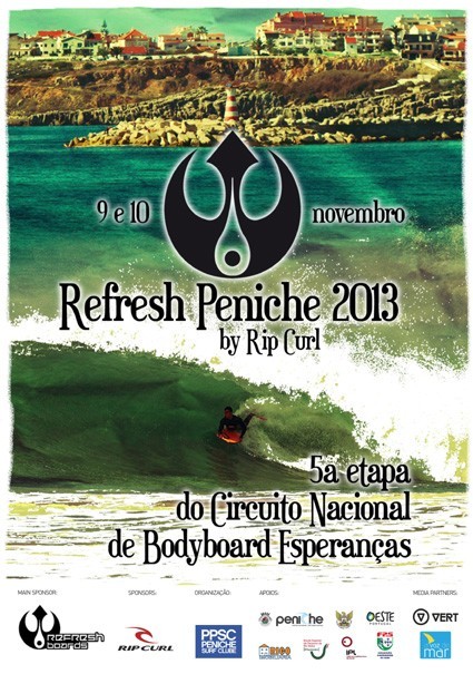 A Capital da Onda, Peniche, receberá nos próximos dias 09 e 10 de Novembro, as melhores esperanças do bodyboard em Portugal, na 5ª etapa do Circuito Nacional de Bodyboard Esperanças da Federação Portuguesa de Surf o Refresh Peniche 2013 by Rip Curl, prova que é organizada pelo clube local, PPSC - Peniche Surf Clube.