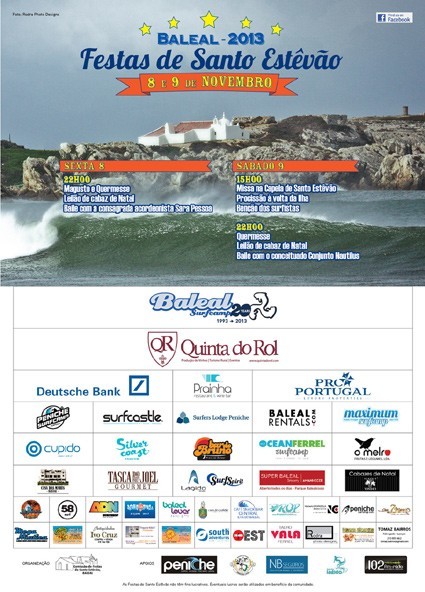 A Bênção dos Surfistas terá lugar no sábado, dia 9 de Novembro, às 15h00, enquadrada na Procissão à volta da Ilha do Baleal, o ponto alto destas Festas. Os surfistas terão oportunidade de pedir protecção e agradecer as boas ondas e os bons momentos que passam em comunhão com a natureza.