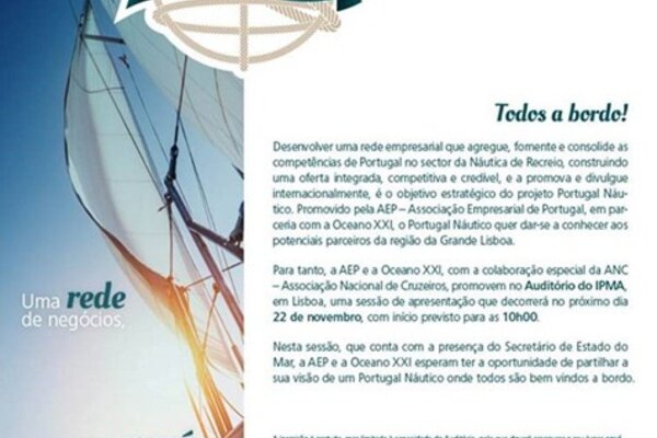 Sessão de Apresentação do Projeto Portugal Náutico, a realizar no próximo dia 22 de novembro, ...17 Novembro 2014 -