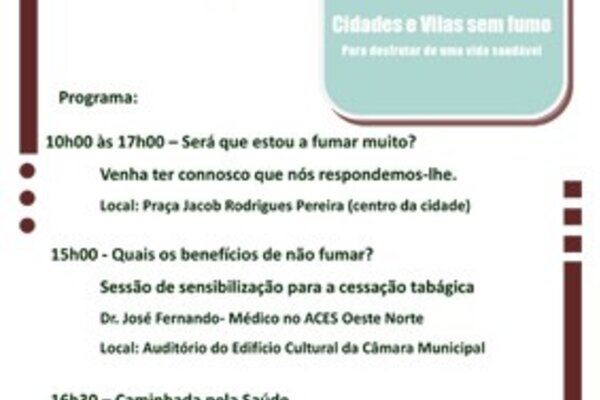 Associando-se à campanha "Cidades e Vilas Sem Fumo", o Agrupamento de Centros de Saúde do Oeste ...15 Outubro 2013 -