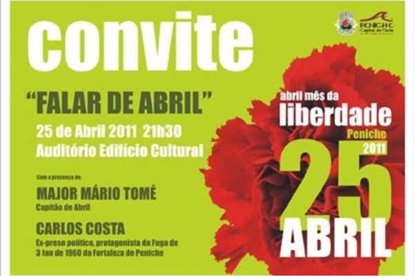 Falar de Abril, dia 25 de Abril pelas 21h30, no Auditório do Edifício Cultural da Câmara ...20 Abril 2011 -