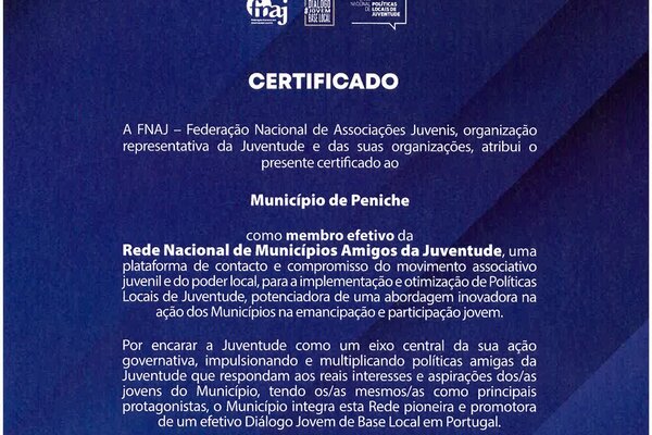 Peniche recebe certificado de membro efetivo da Rede Nacional de Municípios Amigos da Juventude