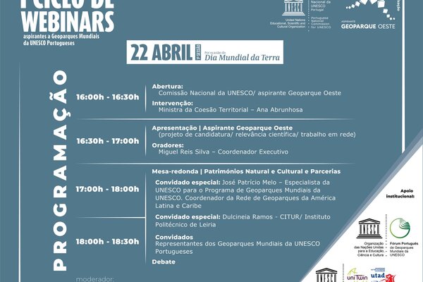 I Ciclo de Webinars sobre os aspirantes a Geoparques Mundiais da UNESCO Portugueses, organizado ...14 Abril 2021 -