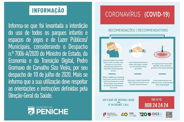 Informa-se que foi levantada a interdição do uso de todos os parques infantis e espaços de jogos ...10 Julho 2020 -