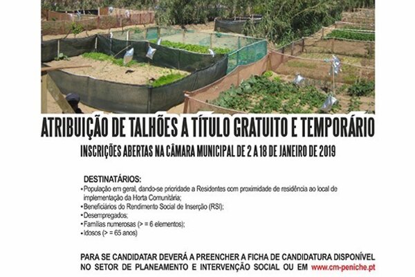 Edital N.º 154/2018 - Abertura de candidaturas para atribuição de 30 talhões de cultivo na Horta Comunitária de Peniche