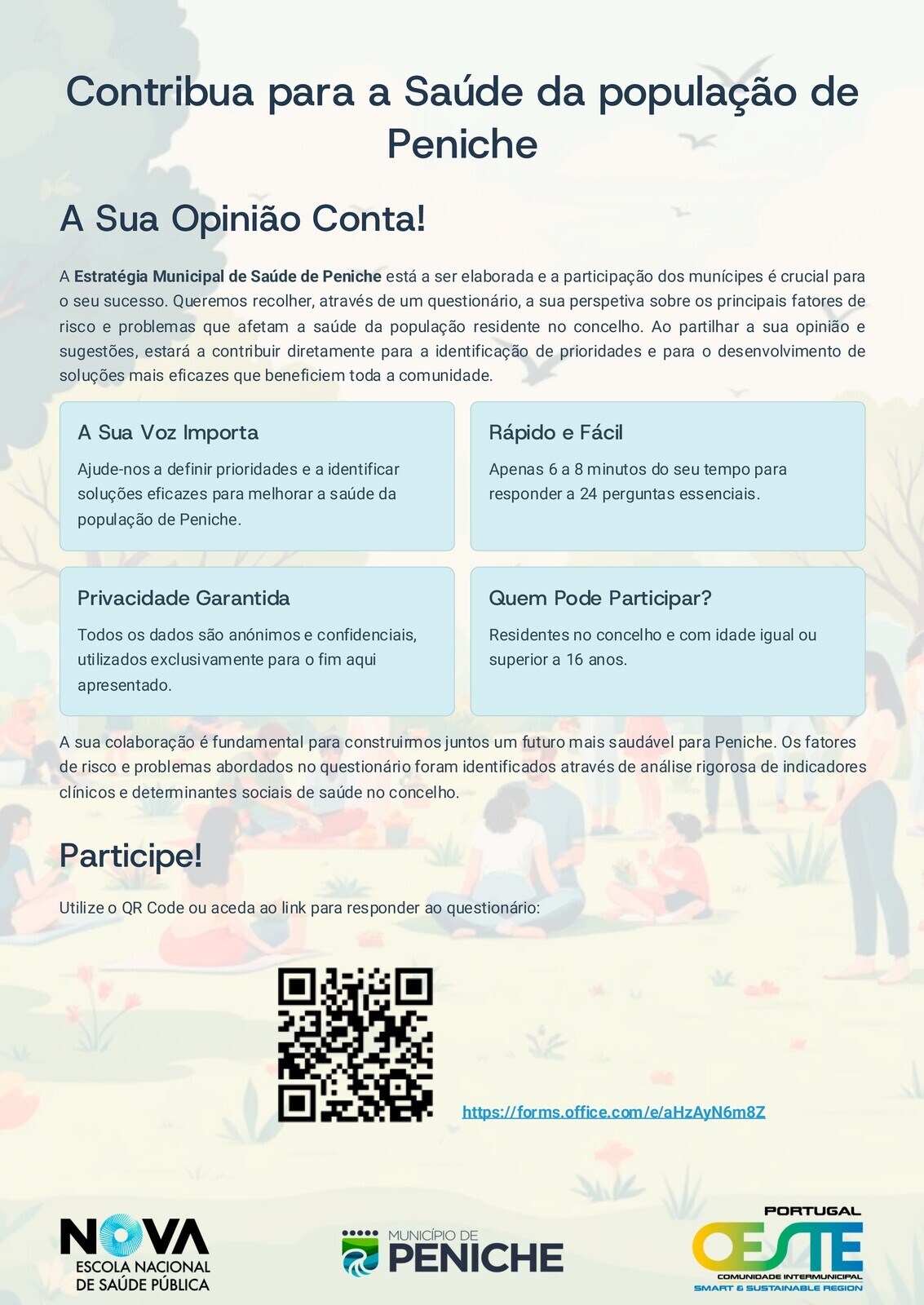 O Município de Peniche apela à participação ativa de todos, reforçando que a opinião de cada munícipe é essencial para construir um futuro mais saudável para o concelho.