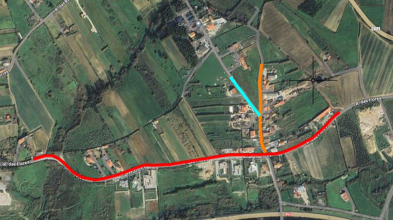 - Fase 1 - Supressão de via de circulação do lado esquerdo da Rua das Flores, no sentido Reinaldes – Casal Fetal, com recurso a semaforização (troço salientado a cor vermelha na imagem);