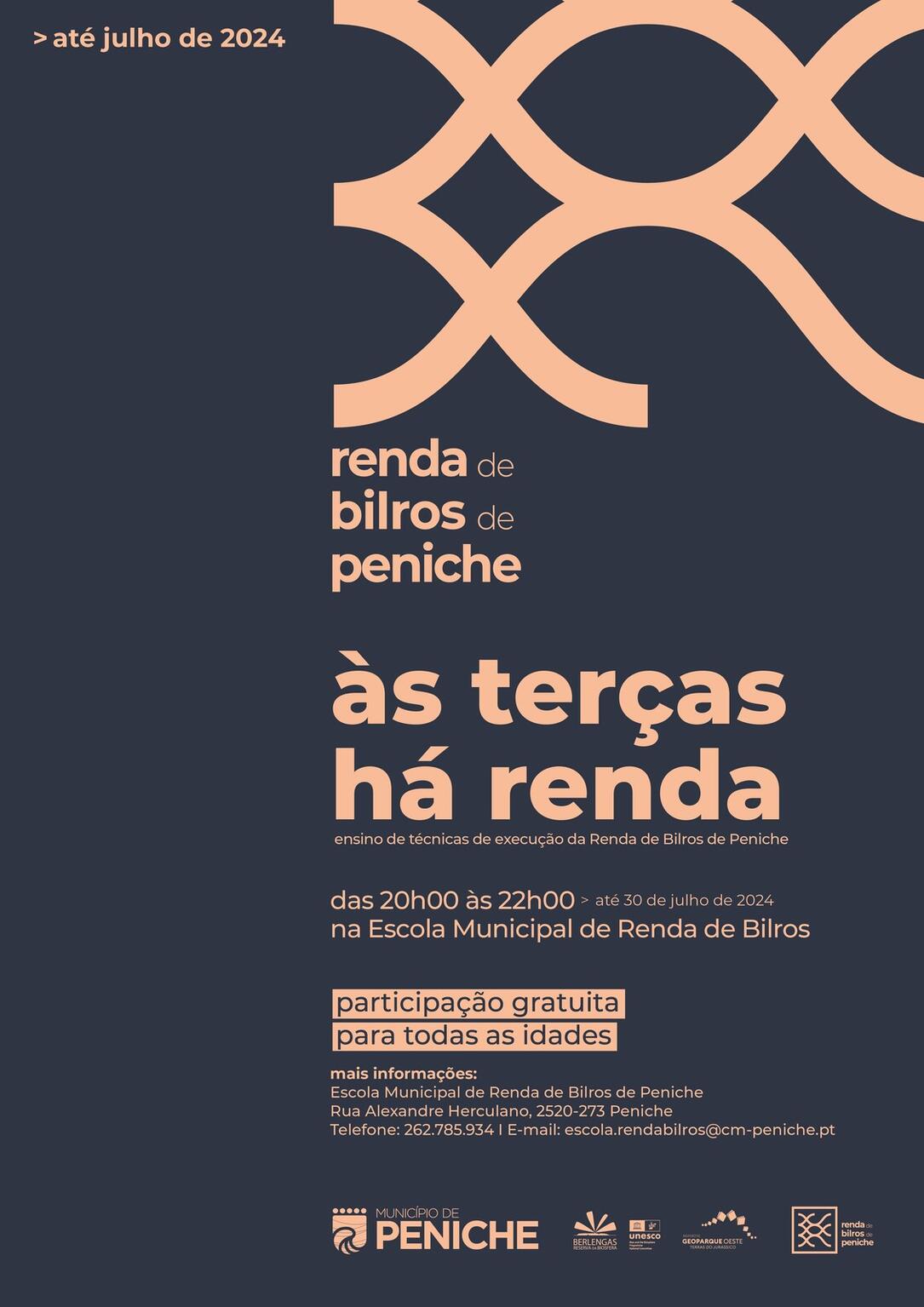 Todas as terças feiras, até 31 de julho, a Escola Municipal de Renda de Bilros de Peniche está aberta entre as 20h e as 22h, para que toda a comunidade, de todas as idades possa aprender, relembrar ou praticar a nossa arte ancestral.