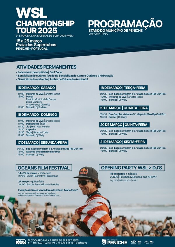 Programação Stand do Município de Peniche | 3ª Etapa da Liga Mundial de Surf 2025