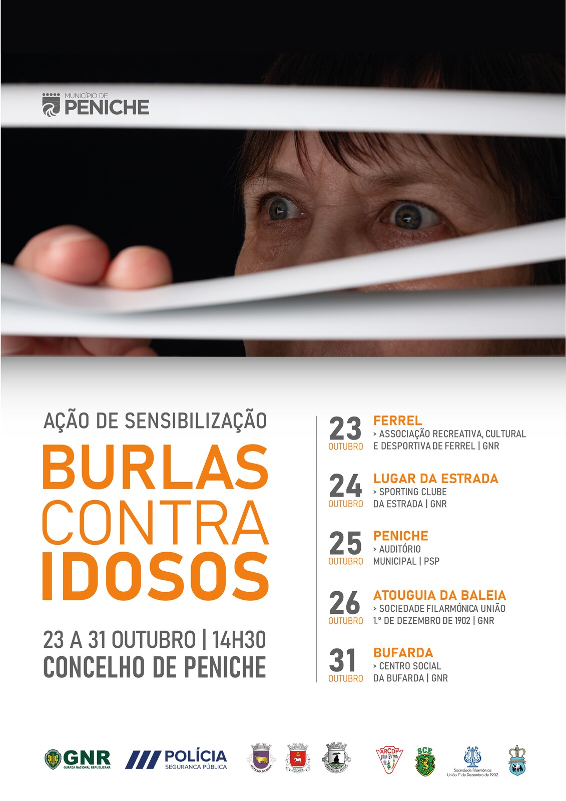 Adicionar a calendário2023-10-23 14:30:002023-10-31 16:30:00Europe/LisbonAções de sensibilização "Burlas contra Idoso"Concelho de Peniche