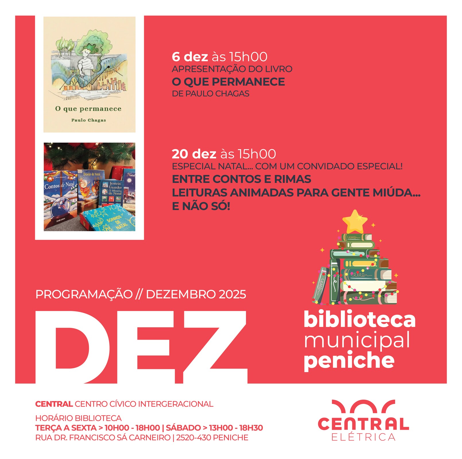 Adicionar a calendário2025-12-06 15:00:002025-12-20 17:00:00Europe/LisbonBiblioteca Municipal | Programação DEZEMBRO 2025Biblioteca Municipal | Central Elétrica - Centro Cívico Intergeracional Professor Rogério Cação