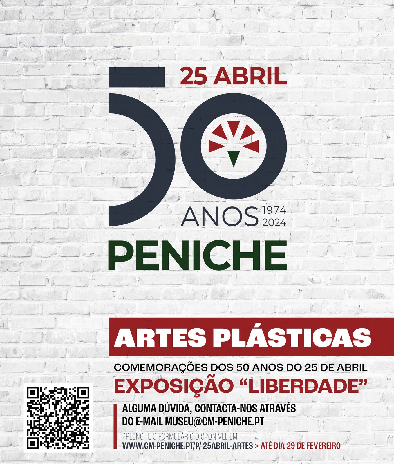No âmbito da celebração dos 50 anos do 25 de abril aceitam-se propostas de Artes Plásticas, para uma exposição no Museu da Renda de Bilros de Peniche, que estará patente ao público de 13 de abril a 30 de junho de 2024.