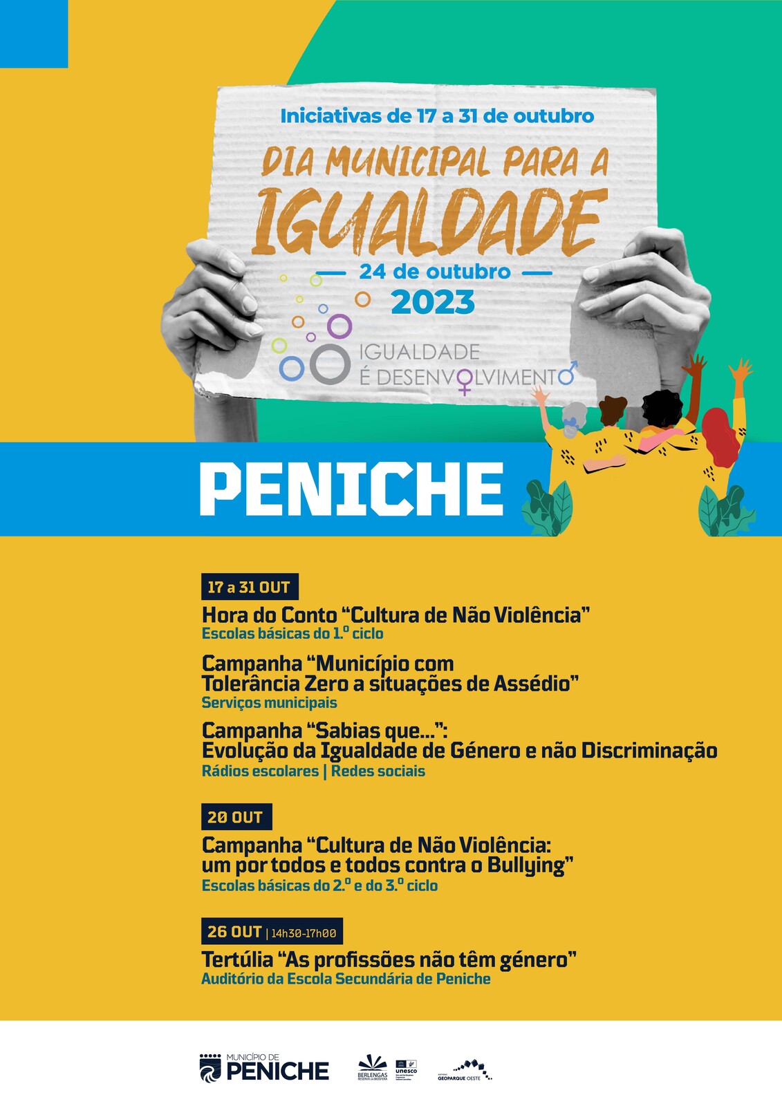 O Município de Peniche associa-se às comemorações do Dia Municipal para a Igualdade, que se assinala a 24 de outubro, com iniciativas de 17 até dia 31 de outubro