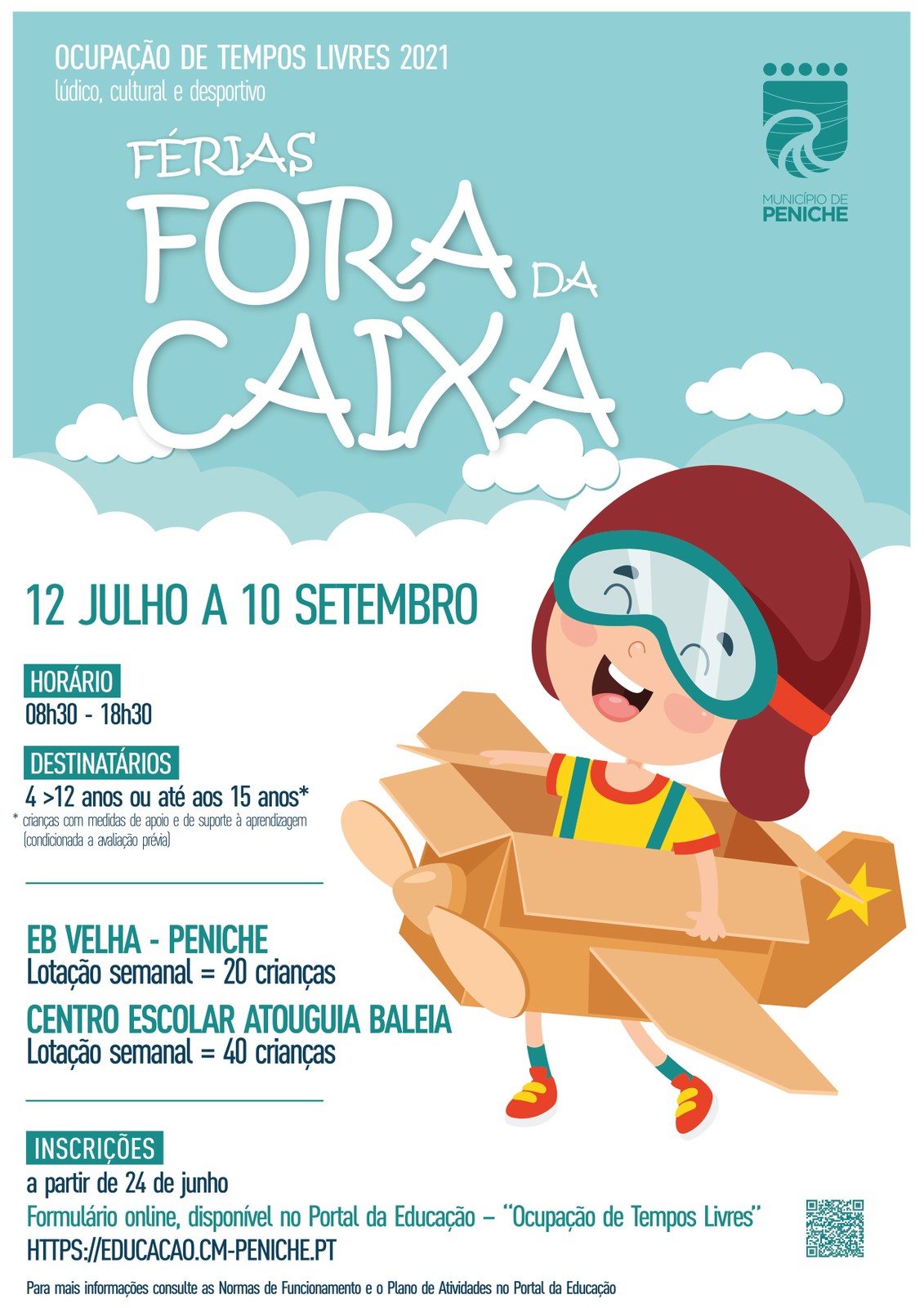 Adicionar a calendário2021-07-11 00:00:002021-09-10 00:00:00Europe/Lisbon"Férias Fora da Caixa"Escola Velha de Peniche e Centro Escolar de Atouguia da Baleia